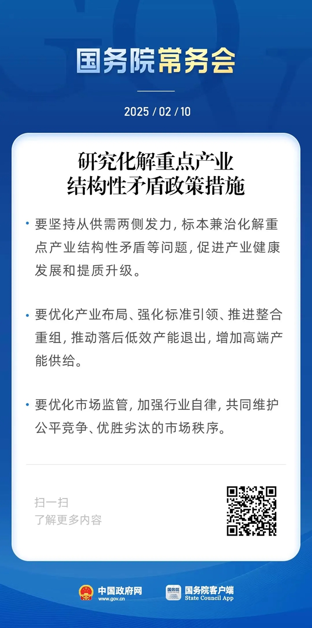 国务院常务会:研究化解重点产业结构性矛盾政策措施