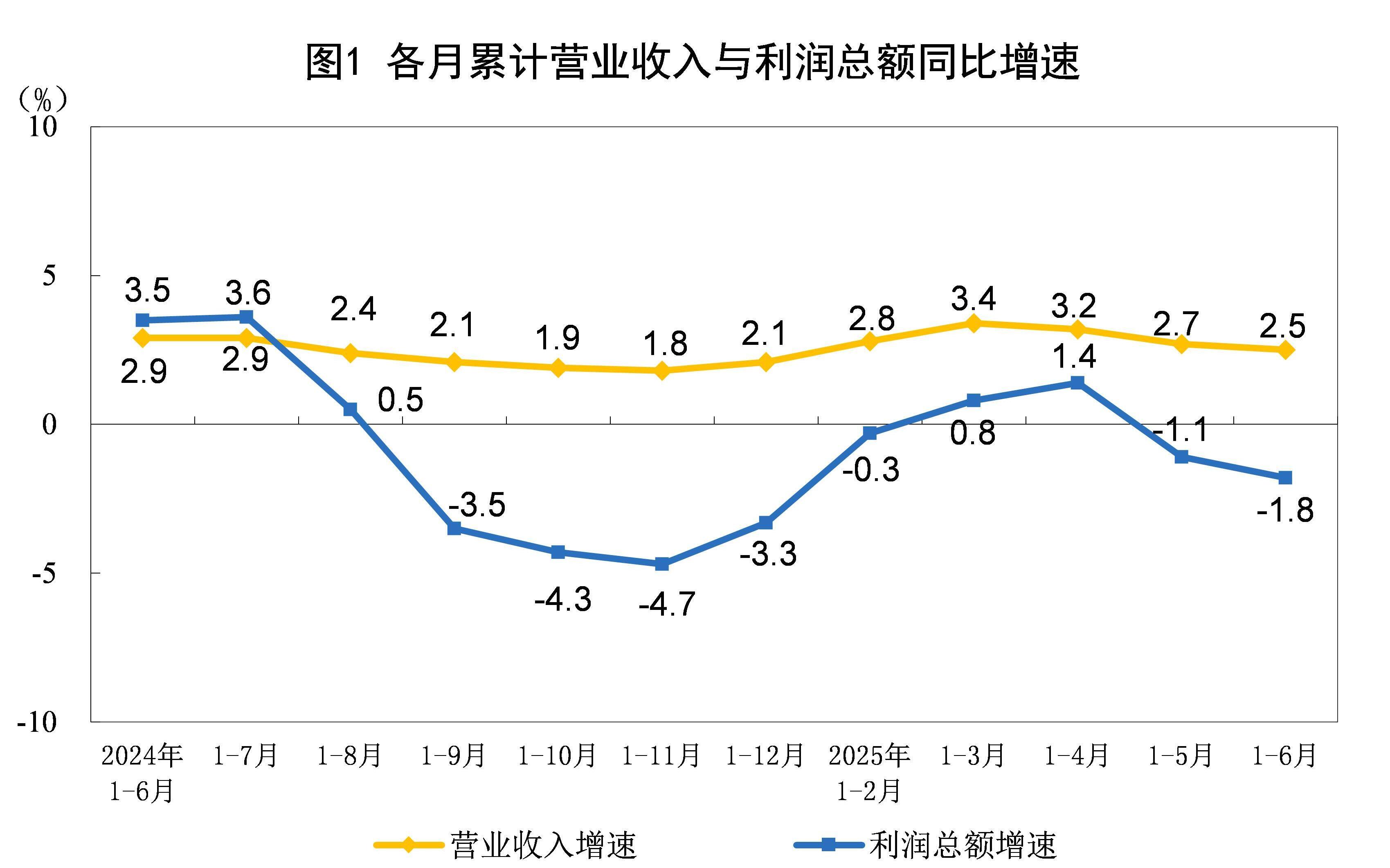 1—6月份,全国规模以上工业企业实现利润总额34365.0亿元,同比下降1.8%(按可比口径计算,详见附注二)。